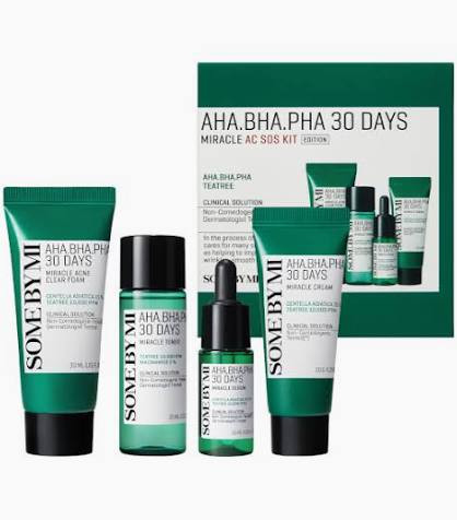 A Some By Mi Miracle Acne Kit egy komplett, 4 lépéses rutin utazó méretben, amely segít megtisztítani a bőrt a szennyeződésektől és szabályozni a faggyútermelést. A termékcsalád titka a háromféle hámlasztó sav kombinációja: az AHA eltávolítja az elhalt hámsejteket a felszínről, a BHA kitisztítja a pórusok belsejét a faggyútól, a PHA pedig gyengéden hidratál és simít.